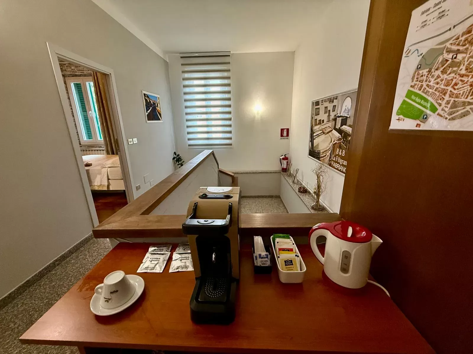 Le camere del Bed and Breakfast La Filigrana offrono un soggiorno confortevole nel cuore di Fabriano, in una posizione strategica per chi cerca un B&B vicino alla stazione e ben collegato con i principali servizi della città. La struttura si trova a pochi metri dalla stazione ferroviaria, scelta ideale per chi viaggia in treno o ha bisogno di spostarsi facilmente. Inoltre, il B&B è a soli 900 metri da Piazza del Comune, il centro storico di Fabriano, raggiungibile con una piacevole passeggiata.
